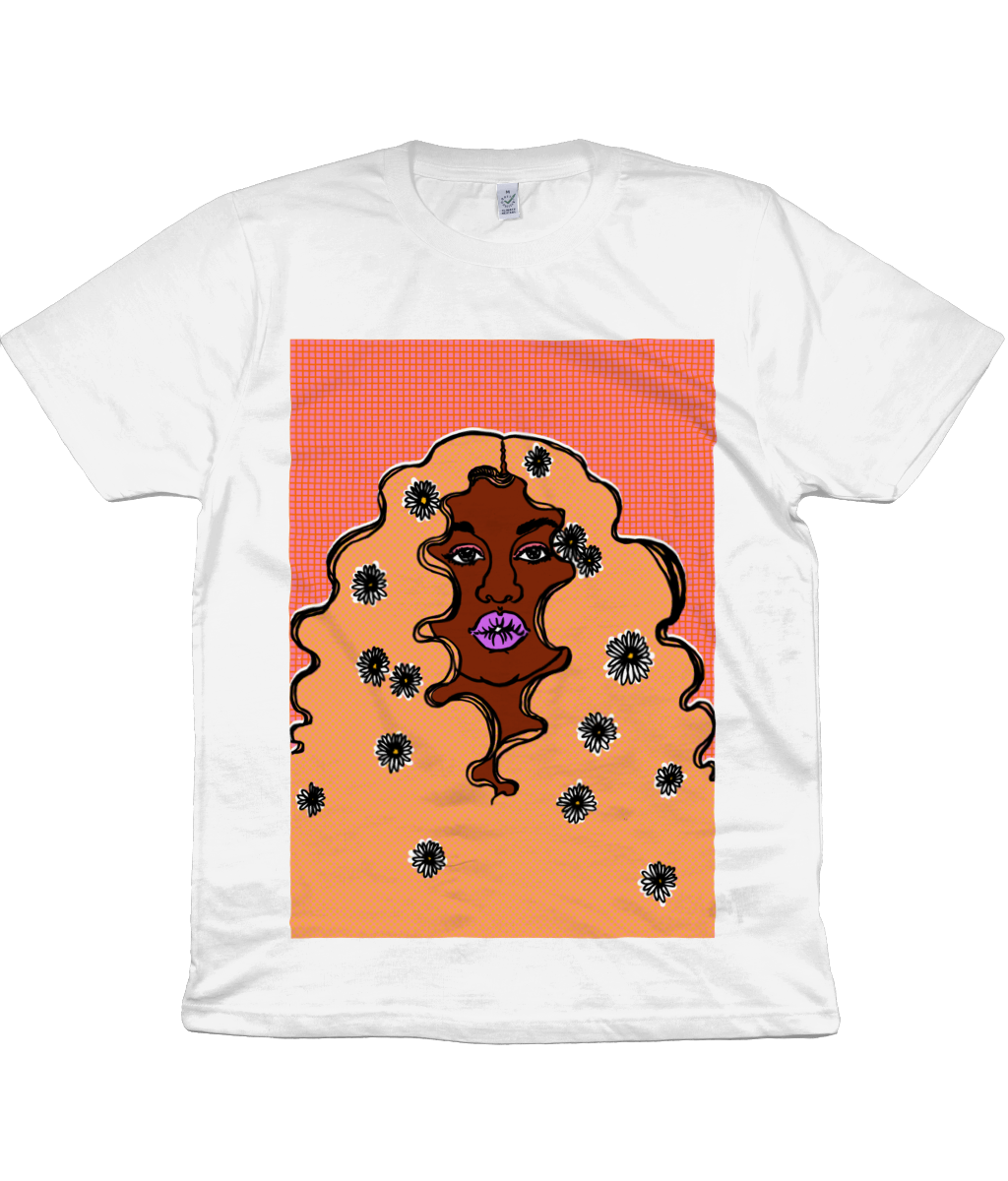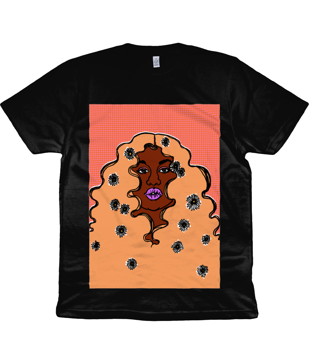 Digitally printed graphic t-shirt featuring an original illustration by Dorcas Magbadelo