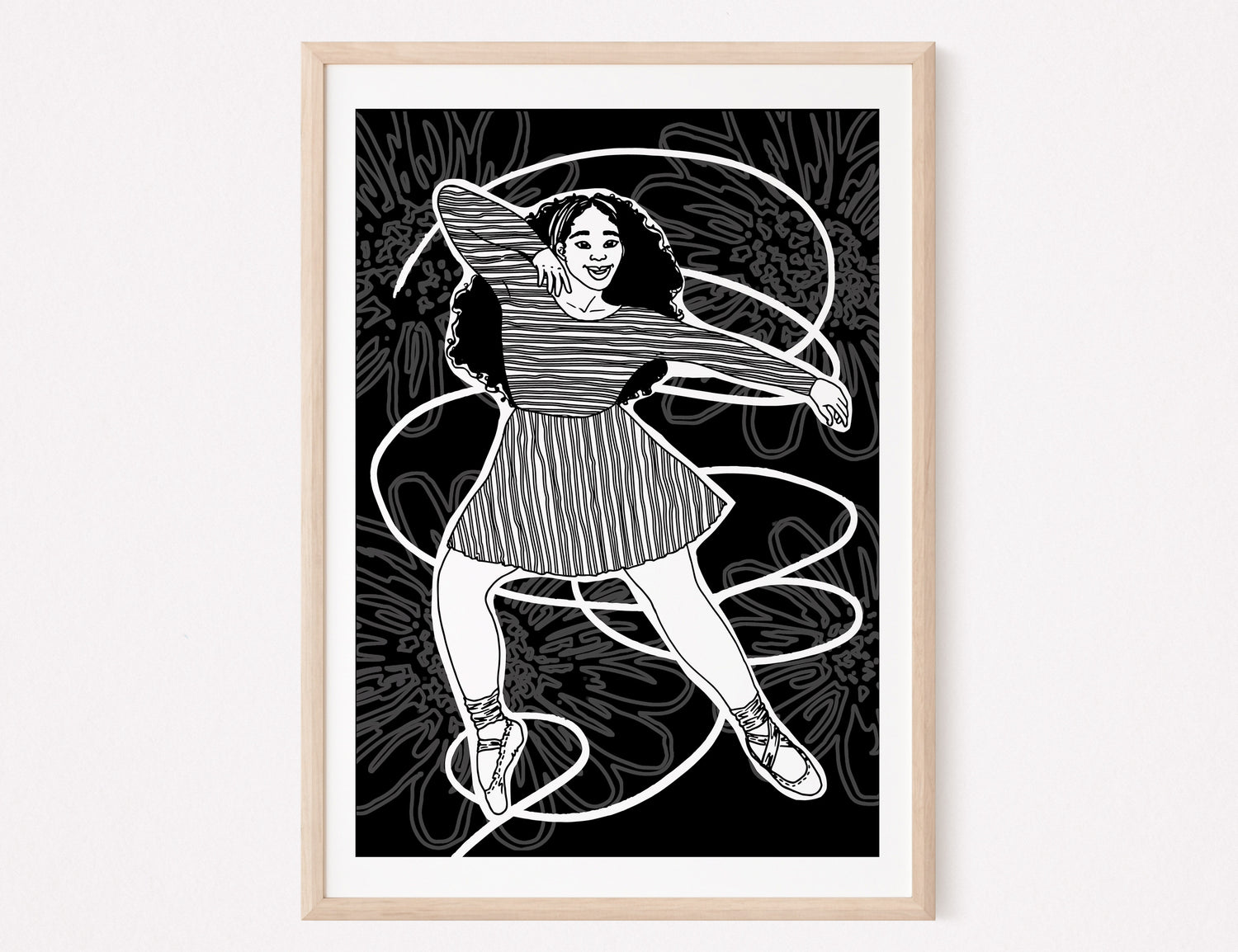 Print based on an original illustration by Dorcas Magbadelo; inspired by the character of Izzy in the short story "A House like No Other" by Alexandra Sheppard, featured in the anthology Happy Here.